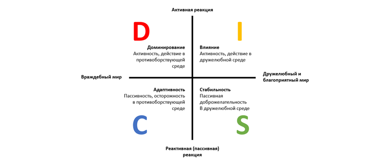 - S (Стабильность): Пассивное поведение в благоприятной среде. Такие люди ценят стабильность, надежность и гармонию.
